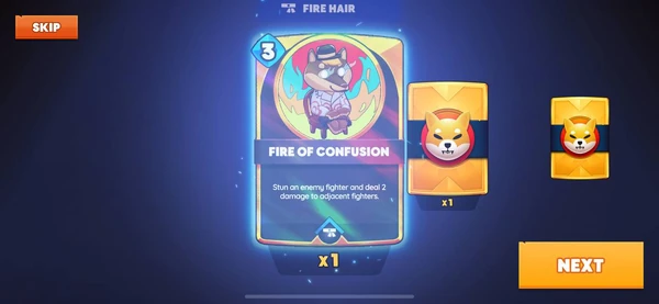 Inside that chest there are two cards and some kibble! Let’s see. The first card is one (x1) common, Fire of Confusion card (this is fine). That’s a Spell card (notice no attack or stamina) and can be used if your Shiboshi has Fire Hair.