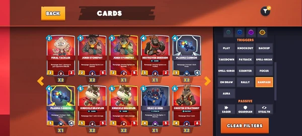 “Let’s choose some trait cards for our GreenBat,” he taps the air and goes to the Trait Card screen on the ceiling. “Let's grab a few cards from here. You want to note the types of card effects (Passive Powers and Keywords) each card uses to help craft a great deck.”
